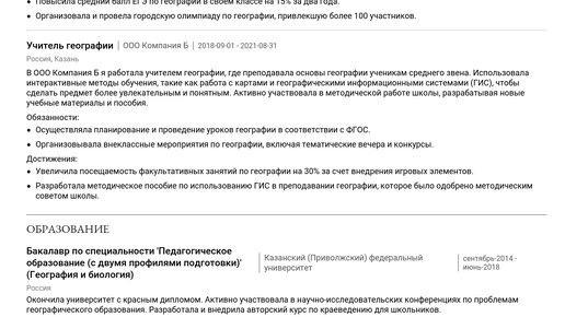 Пример резюме учителя географии 2025 - Как составить