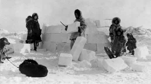 В Арктике древесины нет, из строительных материалов под рукой только снег и лёд. Из уплотнённых ветром снежных и/или ледяных блоков эскимосы и возводят свои жилища – округлые домики иглу. Лучше всего подходит снег средней плотности, который без труда режется на блоки-кирпичи, при этом оставаясь достаточно прочным и не тяжёлым. Снег такого «сорта» можно найти на открытых, продуваемых ветром пространствах, особенно по соседству с различными неровностями рельефа. Форма иглу в сечении – это цепной арочный свод...