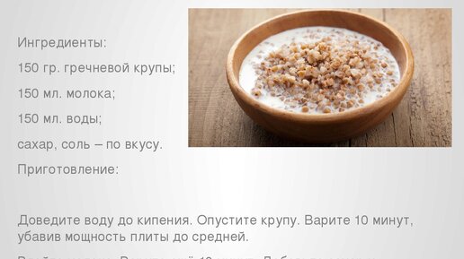 Гречневая каша – самая лучшая пища для тех, кто хочет похудеть без потери мышечной массы и «отвисания» кожи. Она отлично утоляет голод на долгое время и легко переваривается. Ингредиенты Гречка 1 ст.Молоко коровье 3 ст.Вода 1 ст.Сахар-песок 2 ст.л.Масло сливочное 30 гр.Соль1 ч.л. Время приготовления: 65 мин. Шаги приготовления: Займёмся гречкой. Высыпаем зерна на стол, выбираем мусор и черные крупинки. Если вам не очень хорошо виден мусор, высыпьте гречку на белую поверхность – лист бумаги или тарелку...