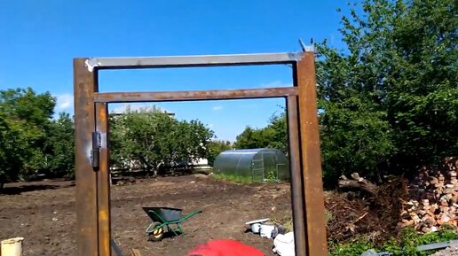 Всем привет! Сегодня я расскажу вам как без посторонней помощи, а точнее одному человеку сварить калитку или ворота буквально за пять минут легко и непринужденно. Поехали. Бетонируем столбы, в нашем случае это квадратная труба 80*80 мм. потом берем 2 трубы 40*40 (из нее у нас будет калитка) длиной от столба до столба, чтобы можно было ее приварить к столбам. Прихватываем сваркой по уровню эти трубы (только не приваривайте крепко, потом сложно будет отрезать эти трубы от столбов), одну сверху, другую снизу это будет верх и низ нашей калитки...