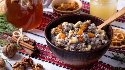 Кутья — обрядовая каша, символизирующая вечность и возрождение. Зерна — воскрешение, мед — умиротворение, мак — плодородие. Кутья — традиционное поминальное блюдо, которое пришло из Византии вместе с христианством. Koukke в переводе с греческого означает зерно. Кашу еще называют коливо. Это популярное обрядовое блюдо, которое готовили на Руси на поминки и праздники. Оно представляет постную кашу из отварной крупы. Чаще всего для приготовления используется пшеница или рис. В кашу добавляют мед, сухофрукты, мак, изюм...