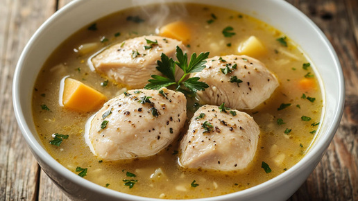 Готовим куриный суп Как сварить вкусный куриный суп: простой рецепт для домашнего обеда Куриный суп — идеальное блюдо для семейного обеда: лёгкое, полезное и невероятно уютное. Готовится быстро, а результат всегда радует. Делимся проверенным рецептом! Что понадобится (на 4–6 порций) курица (окорочка, бёдра или грудка) — 500 г; вода — 2,5 л; картофель — 400 г (4 шт.); морковь — 100 г (1 шт.); лук репчатый — 1 шт.; вермишель (или лапша) — 50 г; масло растительное — 2 ст. л.; лавровый лист — 2 шт.; перец горошком — 5–6 шт...