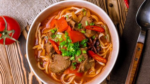 Домашний лагман. Густой, вкусный суп. Узбекская кухня.