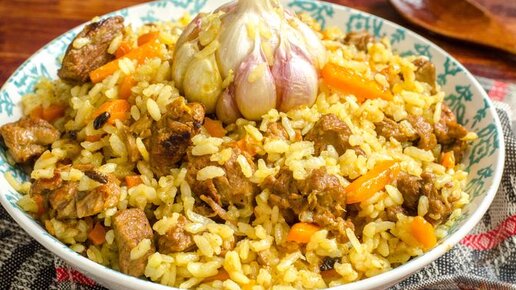 Плов по этому рецепту готовится традиционно с большим количеством моркови, а также лука. Чтобы плов получился рассыпчатым, важно правильно выбрать рис, а также посуду для приготовления блюда. Пряности - барбарис, зира и куркума - обеспечат плову потрясающий аромат...