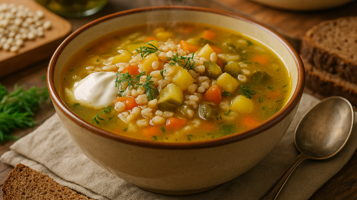 Сегодня на канале «Рецепты от Дарики» готовим по-настоящему домашний, душистый и очень насыщенный по вкусу рассольник с перловкой без мяса. Это блюдо остаётся любимцем семьи благодаря удачному сочетанию хрустящих маринованных огурчиков, рассыпчатой перловки и яркого овощного бульона. Суп получается сытным, но лёгким; в нём нет мяса, а глубину вкуса мы создадим за счёт правильной обжарки овощей, лаврового листа, душистого перца и огуречного рассола. Такой рассольник удобно сварить...