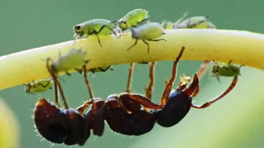 Приветствую, друзья! Известно, почему муравьи поддерживают отношения с тлей. У тли тонкая оболочка, которая постоянно теряет влагу, что заставляет ее непрерывно высасывать соки из растений. И вот подобно тому, как коровы производят молоко, тля выделяет на коже вследствие постоянного испарения сладкую медвяную росу, которая очень нравится муравьям. Именно поэтому муравьи заботятся о тлях, как о домашних животных: переносят их на свежие, молодые и сочные растения, защищают от хищников, а с наступлением зимы забирают в свои муравейники...