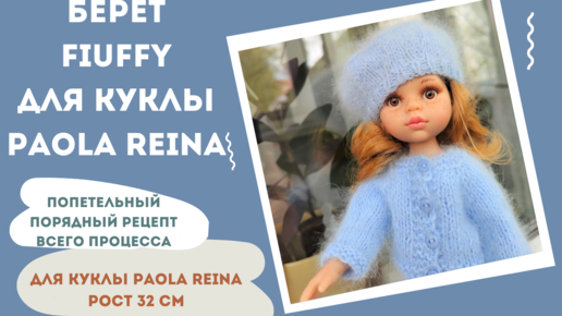 РЕЦЕПТ ВЯЗАНИЯ БЕРЕТА "FIUFFY" ДЛЯ КУКЛЫ PAOLA REINA на ОБЪЕМ ГОЛОВЫ 21 СМ порядный и попетельный. Самый простой и понятный мастер-класс из всех возможных. С процессом вязания берета справится даже новичок. В конце статьи дана ссылка на видеоверсию данного мастер-класса, где вы сможете подсмотреть возможные незнакомые или непонятные моменты. !!! Обязательное условие использования этого рецепта - плотность вязания в 1 см: 2,4 петли, 3 ряда Образец связан: из пряжи Норка (70% ангора, 30% полиамид, 350м/50г), в две нити на спицах 3,5...