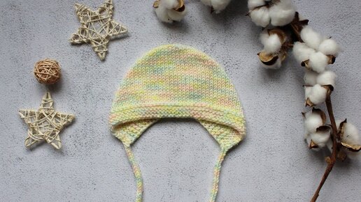 Подробный видео мк по вязания чепчика для новорожденных и не только. Чепчик от 0 до 3 месяцев. Пряжа с али экспресс. Материал: 60% молочное волокно, 30% кашемир, 10% шелк метраж 90 м на 50гр. Спицы 3.5 мм круговые 40см и чулочные. Набираем обычным набором 56 петель. Вяжем платочной вязкой 7 рядов. Всё кромочные провязываем изнаночной. В 8 (изнаночном) ряду провязываем первые первые 3 и последние 3 платочной вязкой. Остальные изнаночными. Таким образом образуется кромка из 4 петель с каждой стороны...