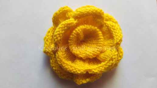 Цветок, связанный спицами будет оригинальным аксессуаром для любого изделия