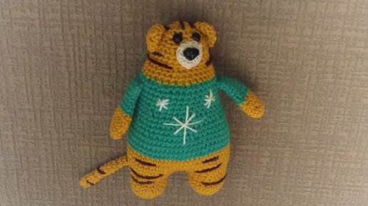 Как связать игрушку - тигренка самой из остатков пряжи.