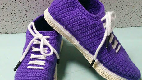 Автор статьи: Галина ВАСИЛЬЕВА Размер: 37 Чтобы связать тапочки-кеды, вам потребуется: пряжа Карачаевская 100 гр, стельки 1 пара, нитки капроновые, шило, пряжа белого и сиреневого цветов, крючок 1,5 мм и 2 мм, шнурки. На изготовление тапочек-кед вам понадобится от 3 до 5 дней, в зависимости от вашего мастерства. Как связать тапочки — кеды крючком? Описание вязания. Для обвязки стельки, необходимо сделать разметку 0,8 мм от края стельки и через 1 см по кругу. По разметке делаем проколы — стелька готова к работе...