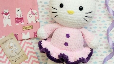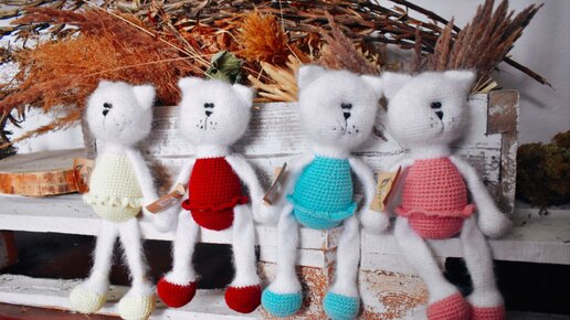 Мастер-класс и подробное описание работы над такой Пушистой кошечкой поможет даже начинающей мастерице связать крючком эту чудесную игрушку. Нам понадобится: пряжа Nako Paris белого цвета, пряжа YarnArt Jeans бордового цвета, холлофайбер, бусины для глазок, крючок, немного черной пряжи для носика. ГОЛОВА Вяжем белым цветом 1 ряд: 6 сбн в кольцо амигуруми; 2 ряд: 6 прибавок (12 сбн); 3 ряд: (1 сбн, пр)*6 (18 сбн); 4 ряд: (2 сбн, пр)*6 (24 сбн); 5 ряд: (3 сбн, пр)*6 (30 сбн); 6 ряд: (4 сбн, пр)*6 (36...