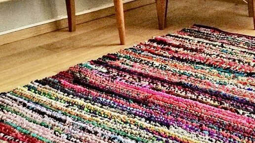 Коврики из вышедших из употребления футболок вязать легко. Главное нарезать полоски шириной 1-1,5 см. и подрастянуть получившуюся нить. Если вы резали футболку по кругу, и у...