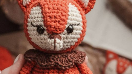 Вяжем милого лисенка с воротничком крючком