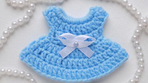 В сегодняшнем мастер-классе мы покажем, как с помощью крючка связать миниатюрное платье. Такое изделие может стать частью поздравления с новорожденным или использоваться в качестве наряда для куклы. Вязать такое платье начнем с верхней его части. Сначала вяжем цепочку из 15 возд. петель. Затем замыкаем их в кольцо соед. столбиком. Далее в это кольцо будем вывязывать простые столбики. Всего выполняем 30 таких столбиков. Так мы формируем ворот будущего платья. Следующий ряд начнем с 3 возд. петель, а потом продолжим вязать столбиками с 1 накидом...