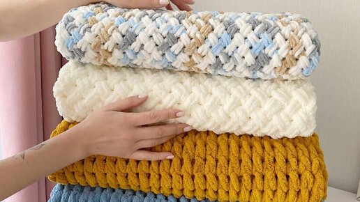 Как связать плед без спиц и крючка? Огромный плед "Love is" из пряжи Puffy Fine