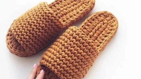 Сегодня приготовила для вас интересные тапочки из трикотажной пряжи крючком и спицами.