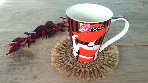 Я вновь беру в руки джутовую верёвку и за несколько минут превращаю её в ... Здравствуйте! А что, если нам связать достаточно простую, но в меру оригинальную подставку из джута под горячую кружку? В домашнем декоре она смотрится великолепно, и я не знаю более легкой идеи обновить свой интерьер на кухне. Нам понадобится джут, ножницы и крючок № 5 (я вязала именно таким размером). Как правило, все салфетки и круглые подставки в том числе, мы вяжем, используя кольцо амигуруми. Я немного про него писала вот здесь Начнём, пожалуй...