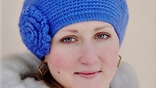 Вязаный берет "Василёк" Модель Ольги Щепетильниковой