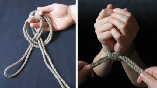 Связывание кистей рук: Формируется узел, накладывается на руки партнера и затягивается петля. Партнер не должен испытывать дискомфорт или боль, все узлы должны быть на своих местах и выглядеть по-японски красиво и эстетично...