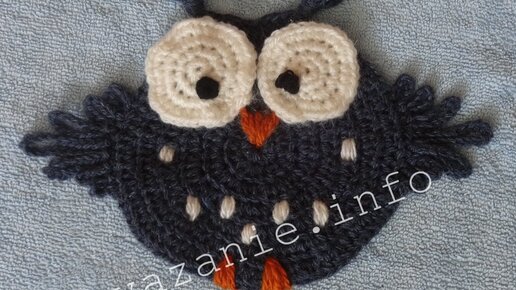 Сова сейчас в тренде! Совы используются везде: рюкзачки, шапки, коврики в виде совы, они и на варежках, и на свитерах, и на шапках, и на носках, и в закладках. Рассмотрим же, как связать сову крючком. Совушка На фото выше мы видим коврик в виде совы. Вяжется он довольно просто. Нам потребовалась пряжа "Травка" для основания коврика, белая, черная и коричневая пряжа для того, чтобы коврик стал похож на сову, то есть, для отделки. И крючок, точнее, два крючка, №4 и №9: одним вязали глазки, клюв и крылья, вторым - сам коврик...