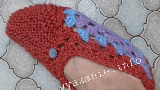 Сегодня расскажу, как связать тапочки или следки крючком и спицами. Их можно связать за вечер. Сидят, как влитые. Очень удобные. Можно использовать даже небольшие остатки пряжи. Нам потребуется: спицы носочные №3, крючок №3, пряжа любая разных цветов, всего примерно 60 г. Описание. Как связать тапочки. Начинаем вязать крючком. Я вяжу на 38 размер ноги. Набираем 18 воздушных петель. 1 ряд. 3 воздушные петли подъёма и 2 столбика с одним накидом. *1 воздушная петля, пропускаем 1 петлю, 3 столбика с накидом*...