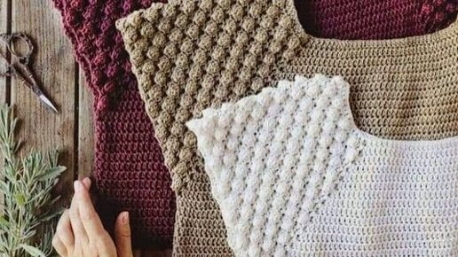 Мини-мастер-класс в картинках. Простой способ связать оригинальный топик с рукавчиками, узор на которых отличается от узора на основном полотне. Цвет пряжи может быть любым. Немного хочу сказать о метраже составе пряжи (для тех, кто недавно начал вязать это может быть существенным). Метраж пряжи - 250-500м/100г. И о составе. Если это хлопок, то лучше тонкий, например Денди от Камтекс Хлопок натуральный от Пехорки Хорошо подойдут лён, вискоза, смесовые составы. Дело в том, что пышные столбики утяжеляют изделия, лен, вискоза -легкие материалы, поэтому они предпочтительнее в этом случае...