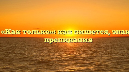 «Как только»: как пишется, знаки препинания Правильное употребление «Как только» и знаков препинания Один из сложных моментов при написании текста — это правильное употребление выражения «как только». Сначала определим значение этой фразы. «Как только» — это сочетание слов, которое обозначает, что что-то произойдет сразу после того, как произойдет другое событие. Например: как только появится солнце, мы отправимся на прогулку. Важно помнить, что «как только» является союзом, который связывает два предложения...