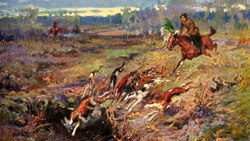 «…Уже были зазимки, утренние морозы заковывали смоченную осенними дождями землю, уже зеленя уклонились и ярко-зелено отделялись от полос буреющего, выбитого скотом, озимого и светло-жёлтого ярового жнивья с красными полосами гречихи. Вершины и леса, в конце августа ещё бывшие зелёными островами между чёрными полями озимей и жнивами, стали золотистыми и ярко-красными островами посреди ярко-зелёных озимей. Русак уже до половины затёрся (перелинял), лисьи выводки начинали разбредаться, и молодые волки были больше собаки...