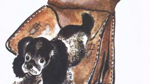 Пришли к озеру, сели на берег и стали кидать камушки в воду — кто дальше бросит. А портфель с Томкой на траву положили. Вот он вылез из портфеля, увидал, как камушек плюхнулся в воду, и побежал...