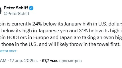 В настоящее время биткоин торгуется на 24% ниже своего январского максимума в долларах США, но на 30% ниже в японских иенах и на 31% ниже в евро. Таким образом, европейские и японские HODLеры биткоина несут ещё большие потери по сравнению с американскими и, вероятно, сдадутся первыми...
