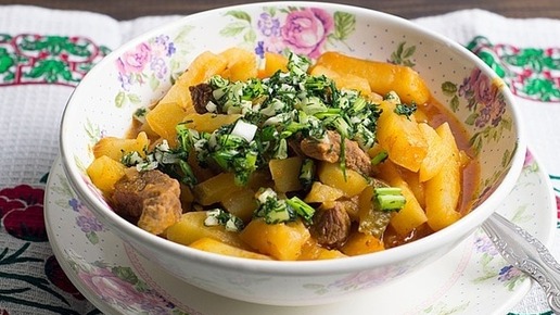 Тушеная картошка с мясом. Простой и правильный рецепт.