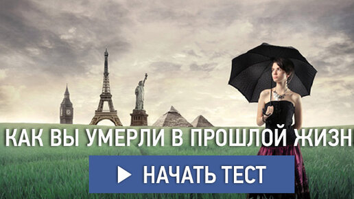 Реинкарнация души все еще остается загадочной и неизученной темой. Некоторые утверждают, что наш разум проживает далеко не одну жизнь, а некоторые это отрицают. Ну, что ж, а мы тем временем представляем, что несколько жизней - это не миф, и предполагаем, как вы могли окончить свое предыдущее существование! 1. Для начала назовите ваш пол, пожалуйста! Женский Мужской 2. Какой вы человек? Привлекательный Храбрый Лидер Брезгливый Спокойный Любопытный 3. Представьте, что вы получили хорошую премию на работе...