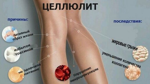 Причины образования целлюлита Существует ряд причин возникновения целлюлита: Неправильное питание и жесткие диеты приводят к нарушению обменных процессов, срывам, набору лишнего веса, отложению жира и зашлакованности организма. Голодный организм стремится всеми силами компенсировать недостаток питания, следствием чего является активное отложение жиров «про запас» преимущественно в области ног и ягодиц. Не последнюю роль играет генетика, часто предрасположенность к образованию целлюлита передается из поколения в поколение...