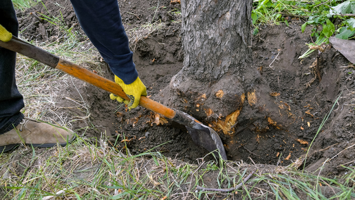 Для чего нужно выкорчевывать дерево полностью? Причины могут быть разные, например: 1 шаг Спилите дерево, чтобы высота пенька была примерно 1 метр. Такая высота позволит эффективно использовать его в качестве рычага при расшатывании. 2 шаг Выкопайте канавку вокруг ствола шириной 2, а лучше 3 штыка (для среднего дерева). Делать ее узкой не рекомендуется, т.к. это сильно усложнит извлечение корней. 3 шаг Начинайте вырубку корней. Каждый из них следует обрубать в двух местах: возле ствола и края канавы...