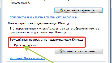 Панель управления - Язык и региональные стандарты - вкладка Дополнительно