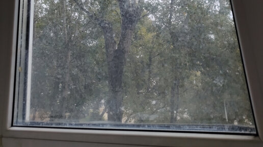 Друзья, у меня нарисовалась проблема. От опрыскивания растений на оконных стеклах появился белесый налет. Налет на окнах настолько закрепился, что не помогало ничего из известных мне средств. Этой весной я их мыла и с разными средствами для окон, и нашатырным спиртом, и простым, и различными губками и всякими "волшебными" тряпками. Даже металлической мочалкой пробовала. Но результат на лицо - вот такие окна. Видите налет? И это "чистое" окно, помытое средством с тряпкой для окон. Конечно, это бесило меня...