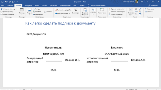 Как сделать подпись в Word