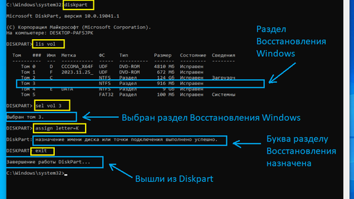 Как убрать букву раздела Восстановления Windows и скрыть этот раздел.