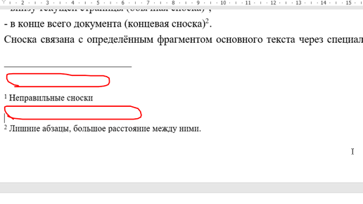 В документе может возникнуть проблема с отображением абзацев в сносках: увеличенное расстояние между чертой и пояснительным текстом. Увидеть ошибку можно, только если включить непечатаемые символы в программе Word. *Чтобы отобразить непечатаемые символы необходимо: 1. Переключитесь в режим работы с документом «Черновик» или «Веб‑документ»: