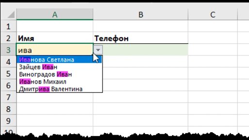 Выпадающий список с быстрым поиском в Excel (без VBA)