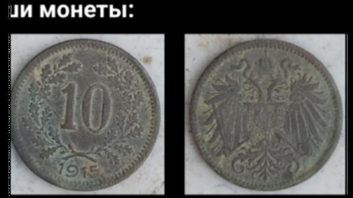 Чистка монет из меди. Чтобы научиться чистить монеты, нужно иметь огромный опыт, килограммы испорченных монет и ящичек с реактивами. У каждого нумизмата есть свои способы чистки, которые он считает единственно верными. Нет всеобщего эталона, к которому должна приблизиться монета после чистки, поэтому результат чистки монет это весьма неоднозначный результат. Я в субботу нашёл в деревне, прямо возле дома у фундамента, там где растаял снег, монету времён Первой Мировой войны, 10 геллеров Австро-Венгрия...