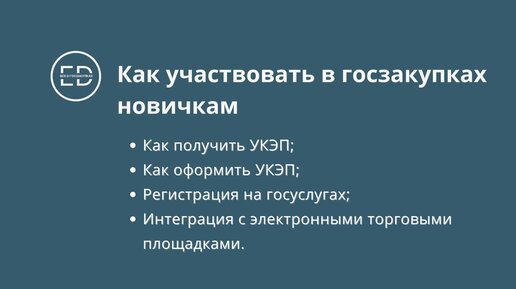 Сегодня все торги проходят на электронных площадках (ЭТП) на конкурсной или аукционной основе, в виде запросов котировок или предложений. Если раньше вы никогда не сталкивались с тендерами – я расскажу, как работать с закупками на электронных торгах. Усиленная квалифицированная электронная подпись Юридическая значимость УКЭП выше, чем у обычной квалифицированной электронной подписи, т.к. она имеет статус оригинала. Для участия в закупках на торгах следует ее получить, т.к. ФНС постепенно переводит бизнес на электронный документооборот...