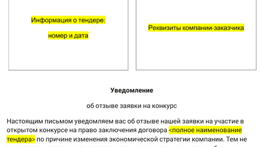Отказ от участия в тендере