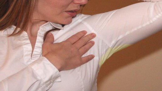 Желтые пятна пота подмышками наиболее заметны на белой одежде...