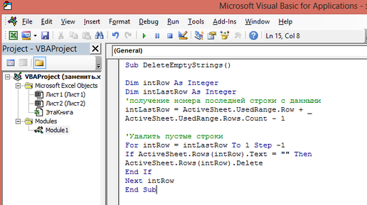 Добрый день уважаемые читатели! Очень часто при работе с таблицами нам приходится удалять пустые строки. Когда таблица очень большая это становится реальной проблемой. Можно попробовать их скрыть, но тогда не получится видеть актуальную информацию (по адресам). Поэтому пойдём путём настоящих исследователей — создадим свою команду на удаление пустых строк. Предыдущая статья, посвящённая часам в ячейке — СТАТЬЯ. На просторах интернета можно встретить ответ на поставленный вопрос, но, как правило, он сводится к одному: Либо предлагается использовать фильтр...