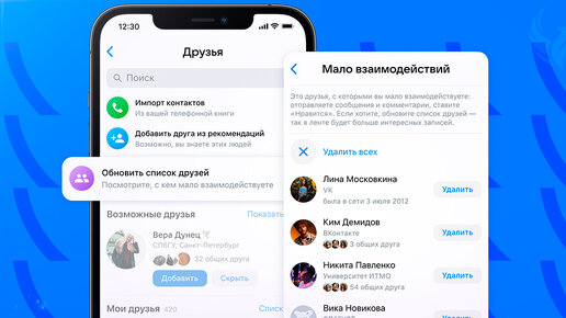 Новая функция позволяет посмотреть и массово удалять друзей с которыми вы не взаимодействуете или которые давно неактивны в ВК.
