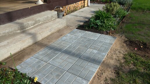 Первая проба положить тротуарную плитку. Пусть не правильно, зато своими руками 😆.