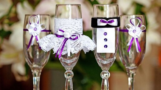 Украшение свадебных бокалов. Зачем украшать бокалы на свадьбу? Показываю бесплатную альтернативу.