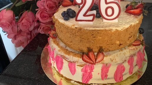 На день рождения я решила приготовить двухъярусный торт. Изучила информацию в интернете о всех нюансах и его перевозке. Торту предстояло провести в дороге 3 часа. Итак. Для двухъярусного торта нам потребуется: Торт диаметром 26 см. Я использовала Бисквитный торт с малиной, фисташками и черникой. Торт диаметром 24 см. У меня был был Медовик 6 палочек для суши Коробка для перевозки торта 2 подложки (28 см и 24 см) Двухсторонний скотч Каждый торт мы собираем отдельно и даем стабилизироваться в холодильнике...